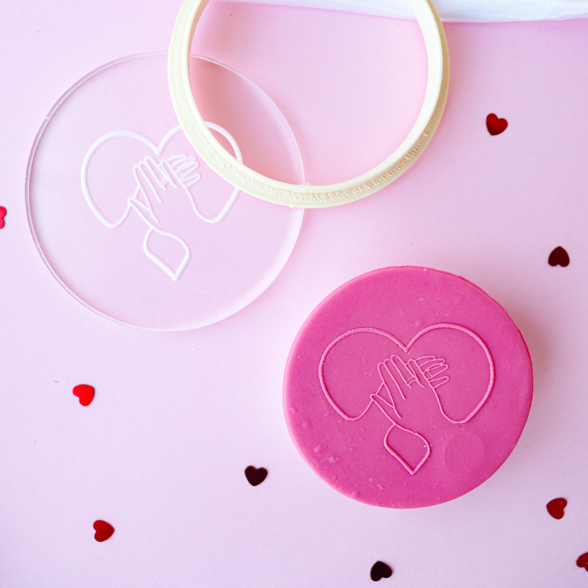Para utilizar, basta pressionar o carimbo sobre a pasta de açúcar para criar um efeito de relevo com o design escolhido.